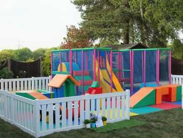 This Package includes the full frame pieces along with our fun soft play equipment; ball pit, step and slide, rockers, building kit and more...