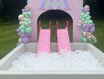 The Ball Pit is 2.5m x 2.5m in size - Slides can be added.
